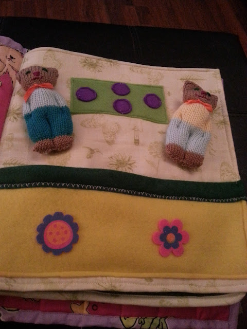 I showed you the busy book last week that I made for my grandson, and now here is the one I made for my granddaughter. They are both the same size, a bit bigger than the original one I made a couple of years ago.